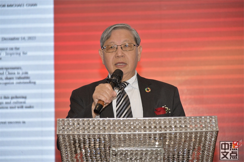 在热烈的掌声中,庆典正式拉开帷幕。商盟主席赵东山首先致辞,他向各界嘉宾与合作伙伴致以诚挚感谢。他回顾过去一年,商盟在复杂多变的全球环境中稳步前行,成功组织浙江科技商务考察团,深入对接新能源、智能制造与数字经济等前沿领域,为国际合作奠定了坚实基础。